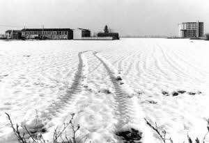 | Identificazione | Cinisello Balsamo - Quartiere Gescal - Scorcio di una residenza con un complesso rurale adiacente da un campo dopo una nevicata |