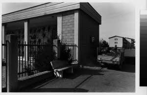 Identificazione Dresano - Ala coperta di un cimitero - Palazzine residenziali